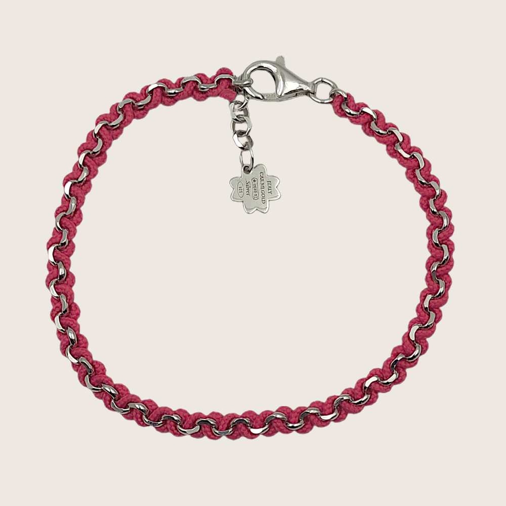 Bracciale in argento 925‰ intrecciato con cordoncino colorato.