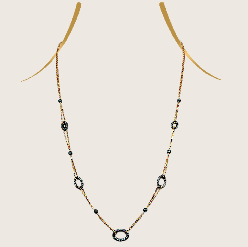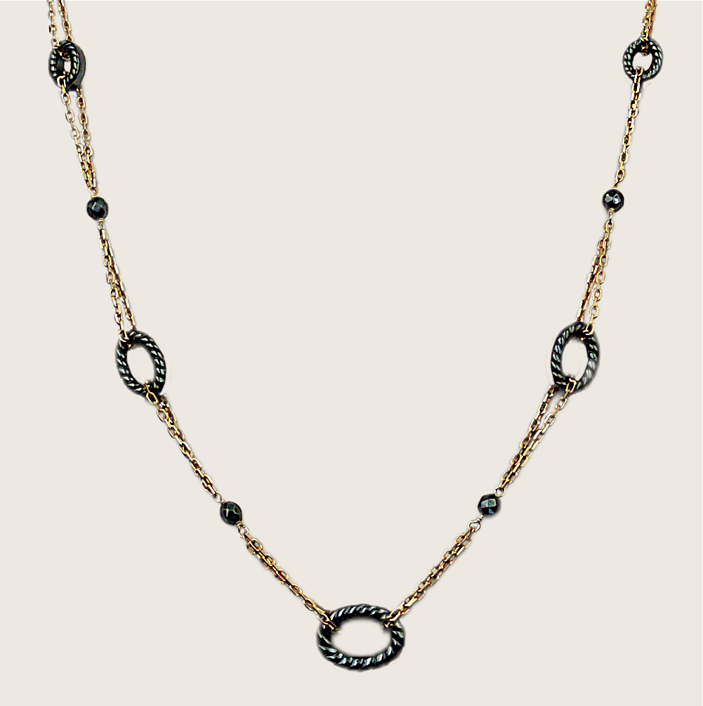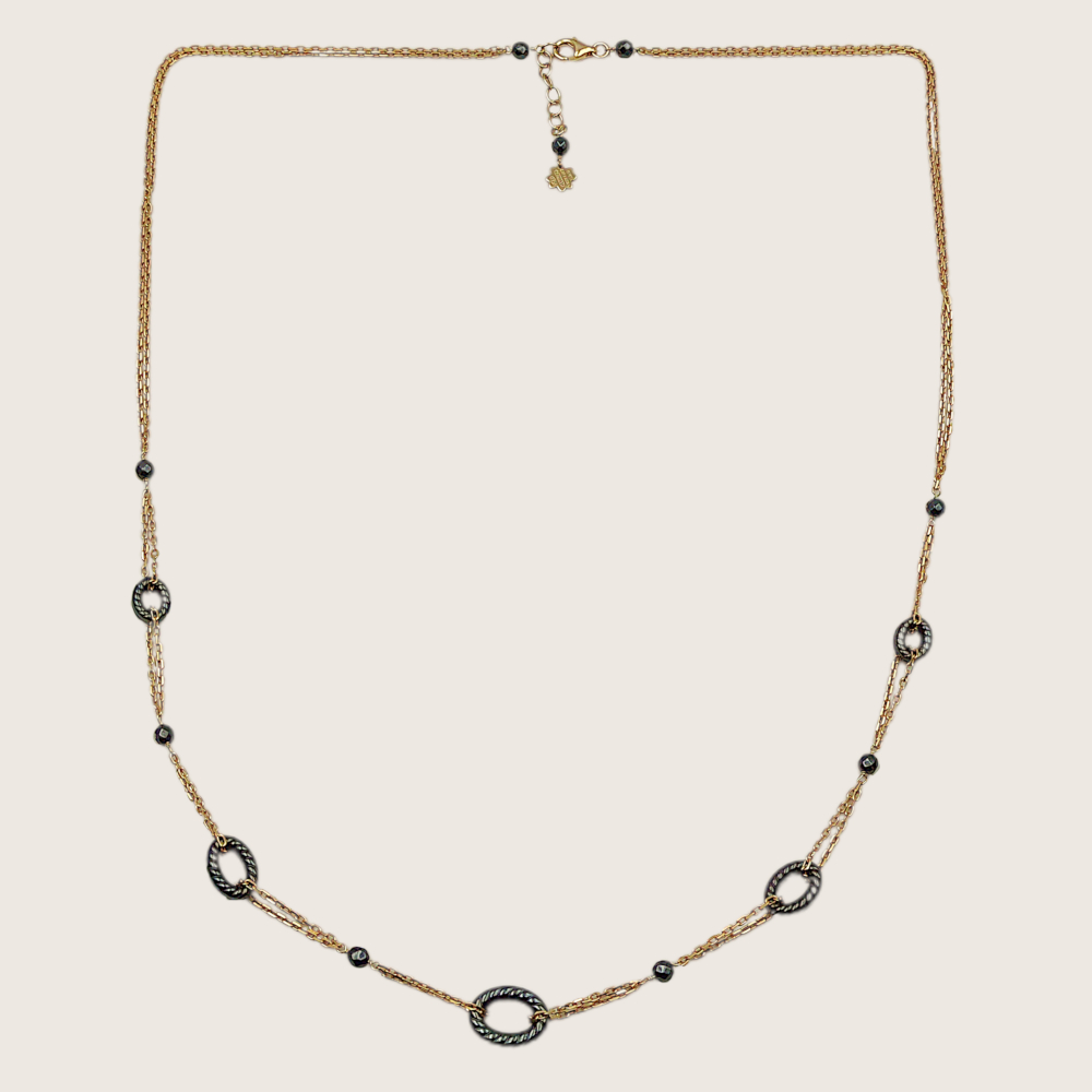 Collana in argento 925‰ Placcata oro giallo 18 kt con inserti in ematite.
